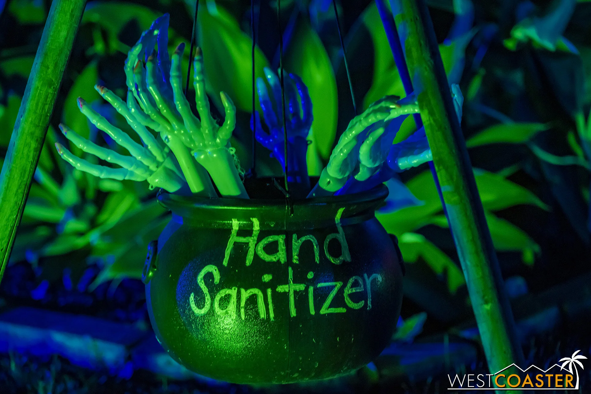 My absolutely favorite gag of the display: hand sanitizer!! It’s a cauldron that’s literally cleaning hands down to the bone!