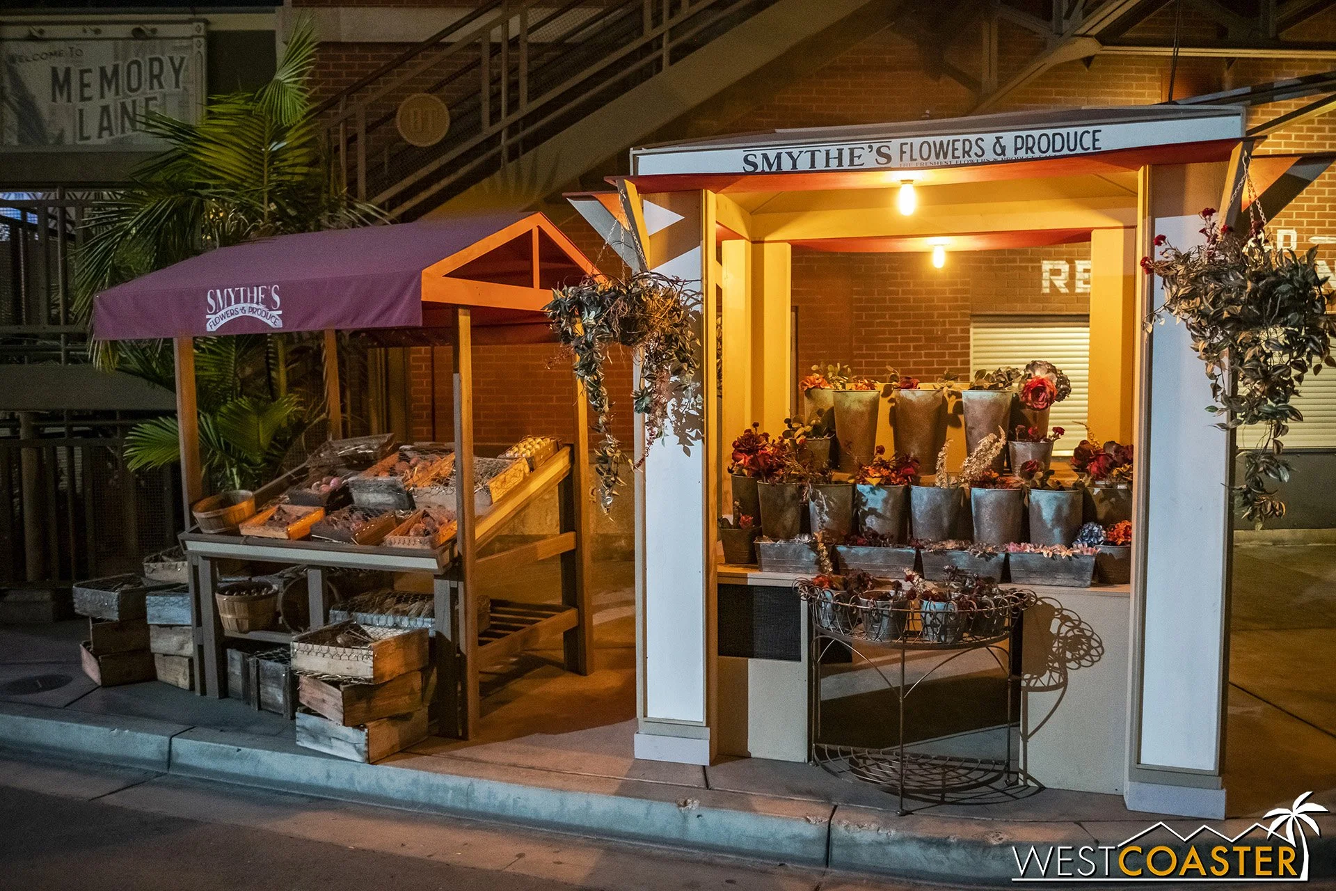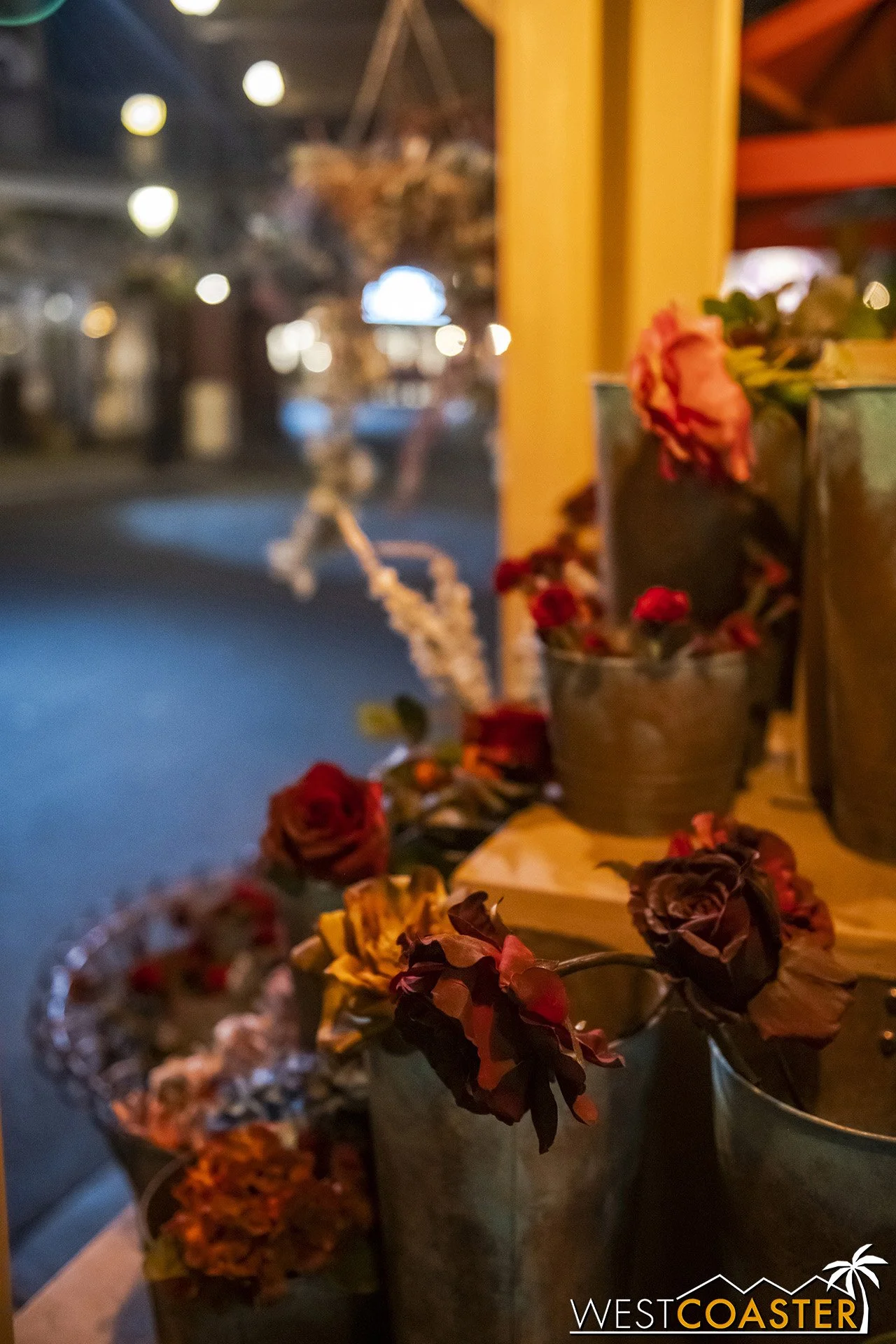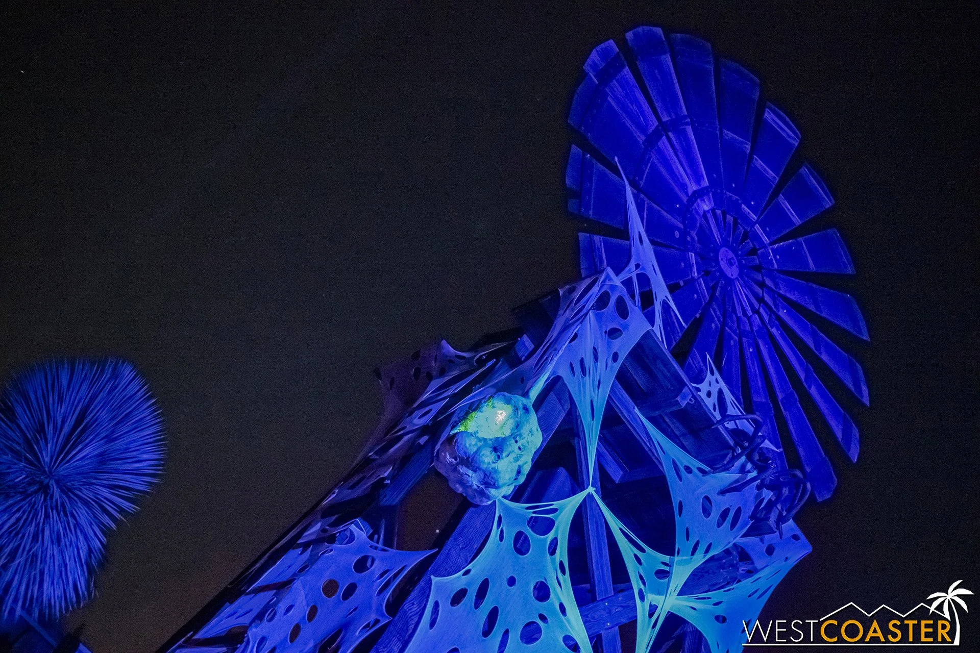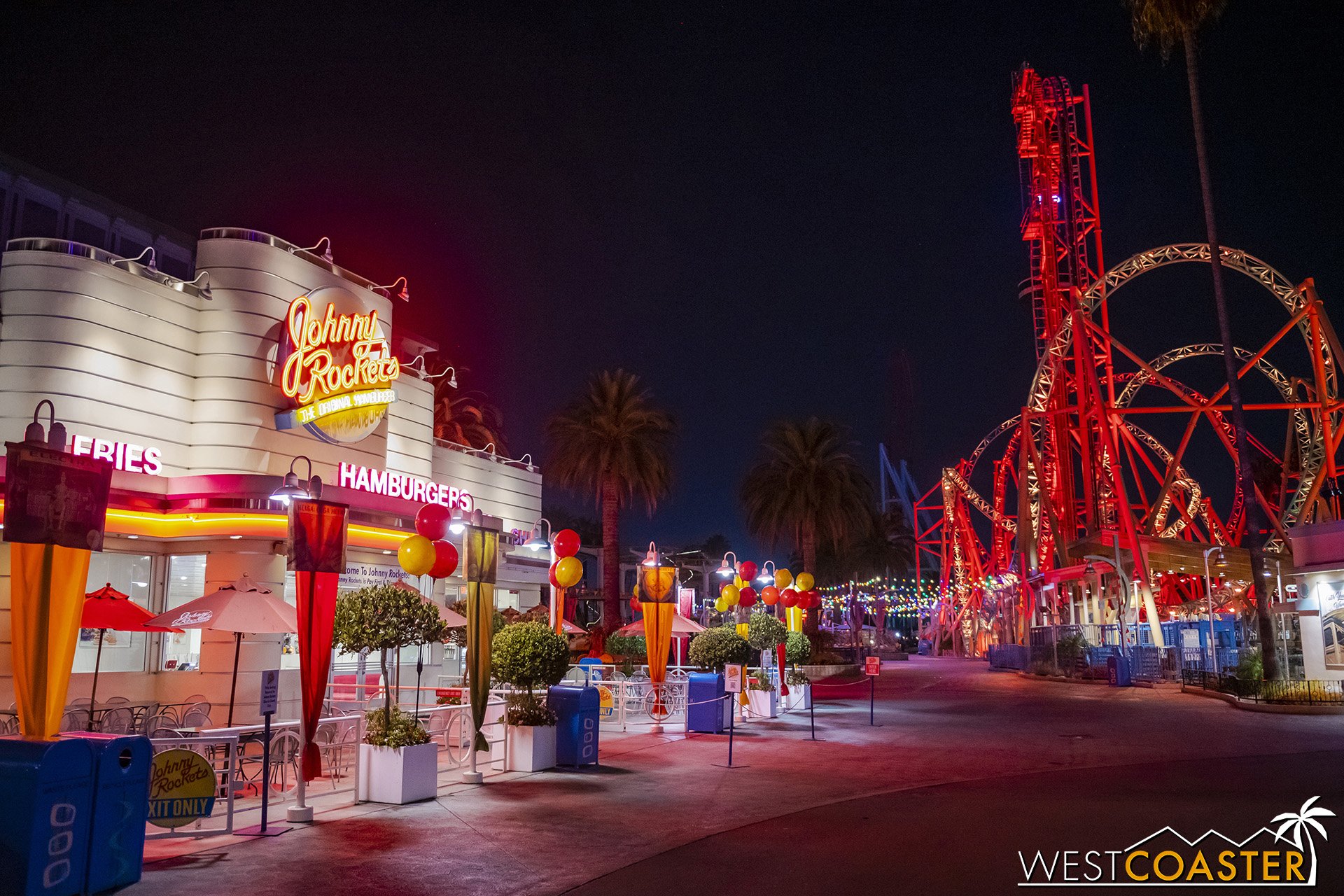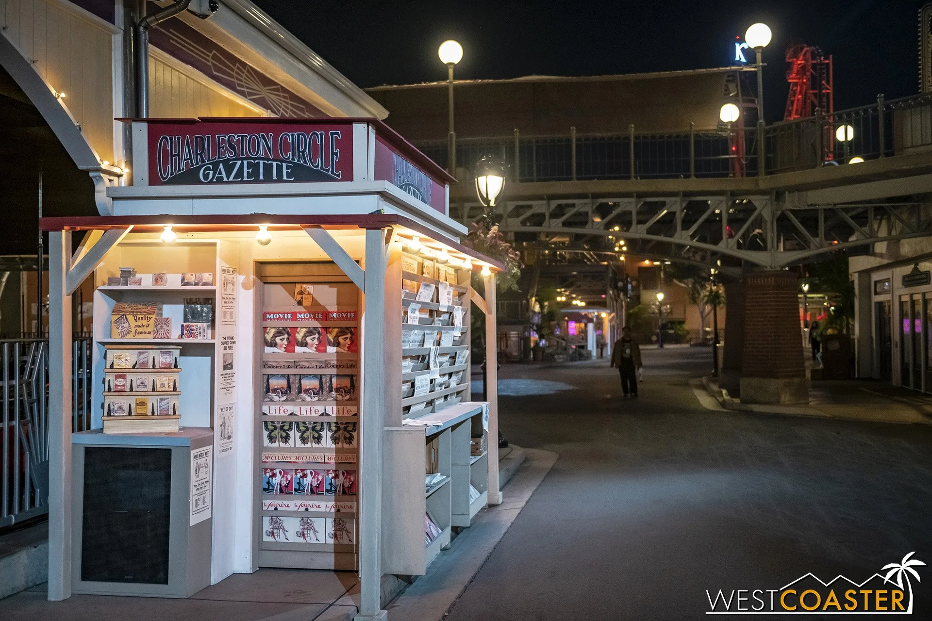 Lastly, we’ll close the update with some photos of the beautiful front gate entry area. Knott’s had been changing this up every year, but the current set-up is pretty iconic and has remained generally the same—dominated by the trio of towering skeletons (long before Home Depot made them commonplace) and a gravely setting. It’s a regular photo op spot throughout the night and after park closing, much like Sleeping Beauty Castle at Disneyland—if only that castle was made of bones!