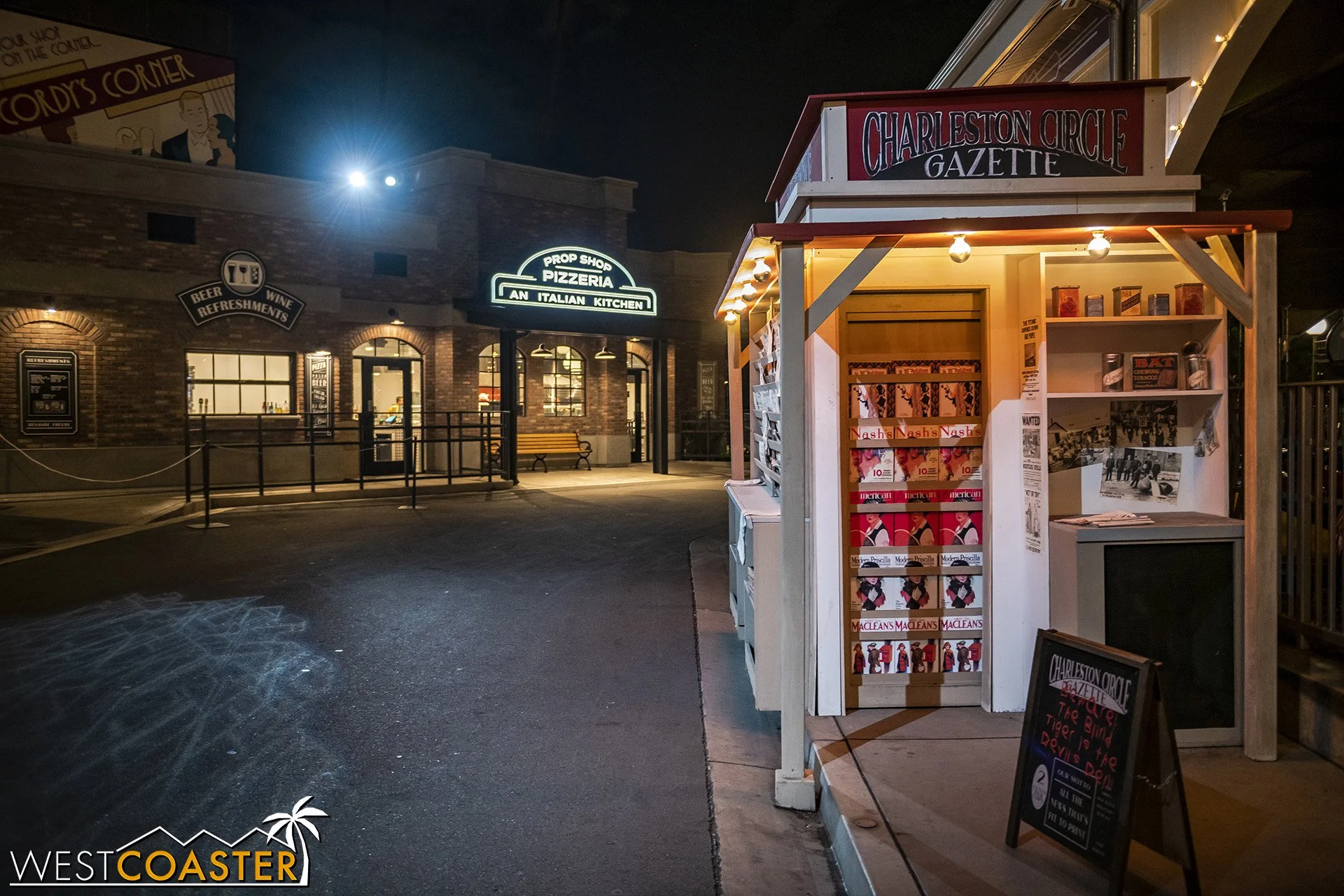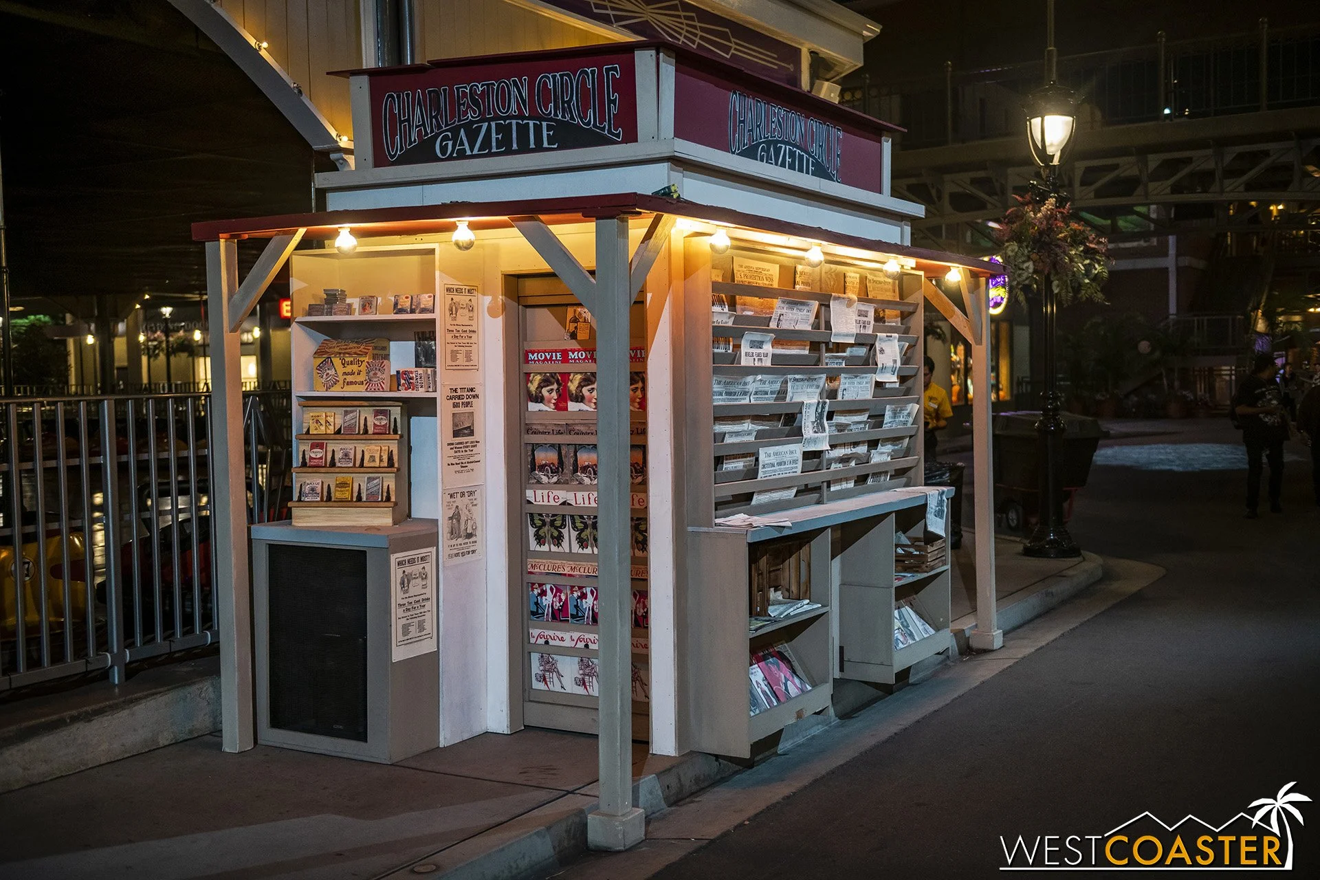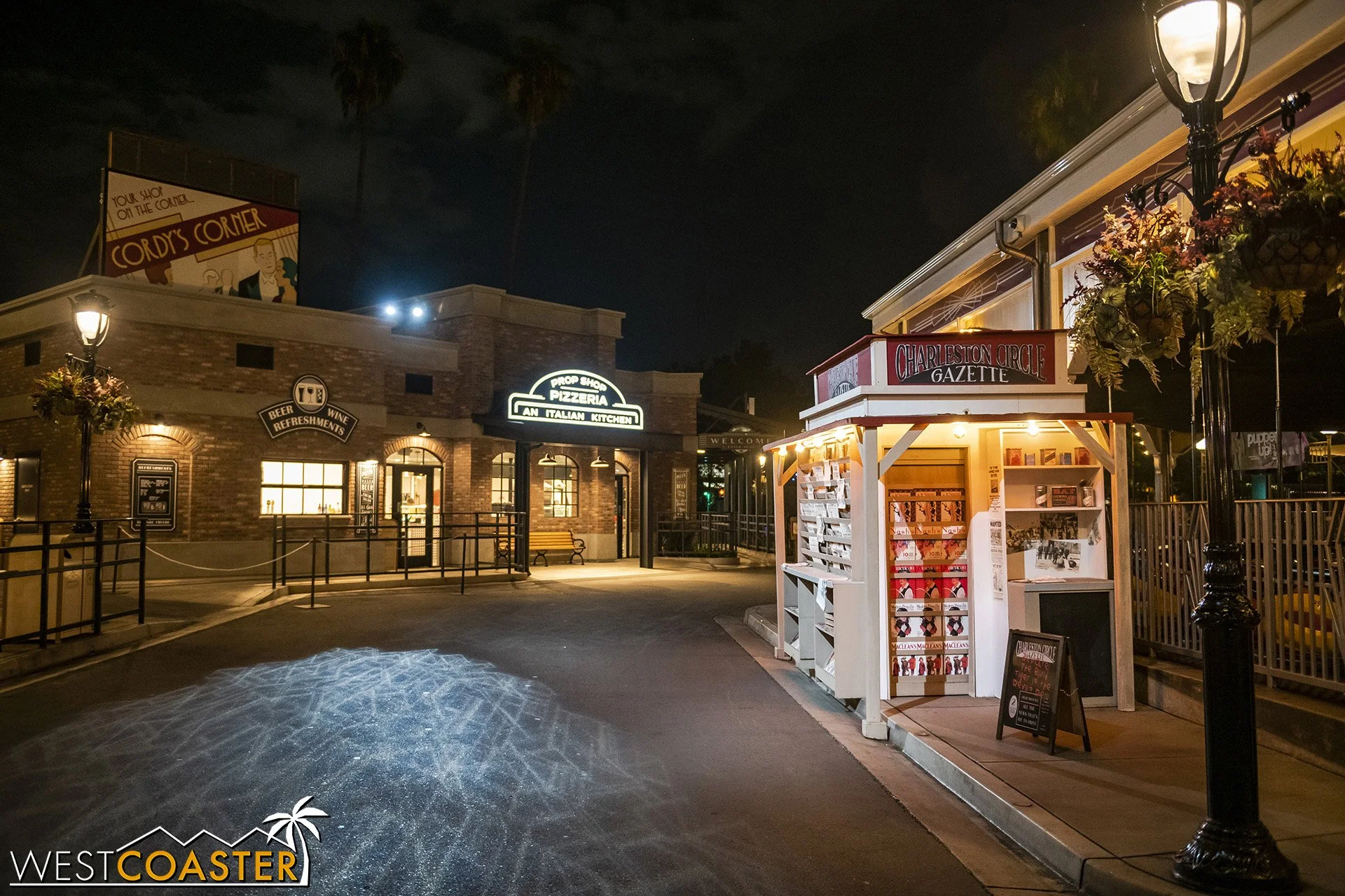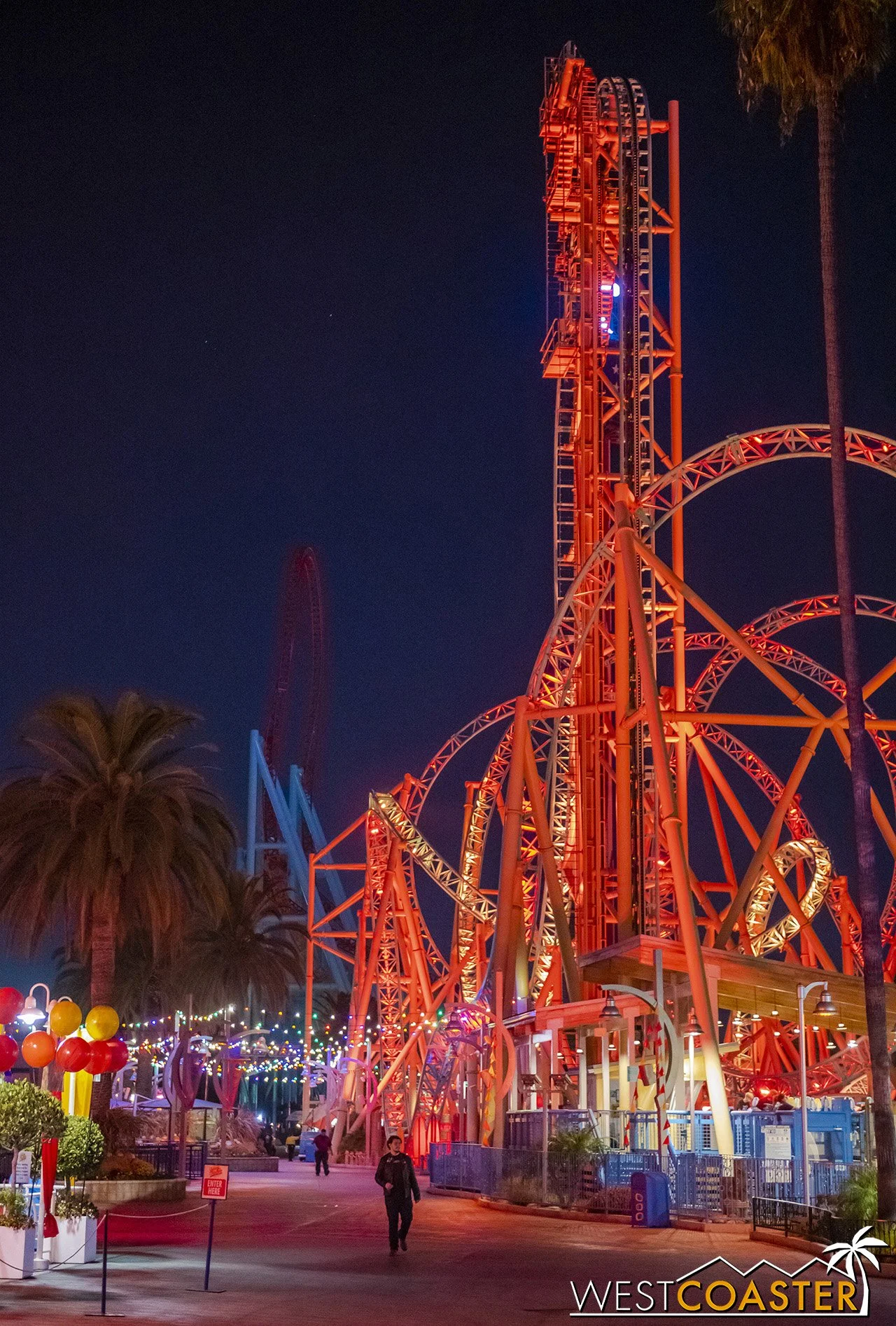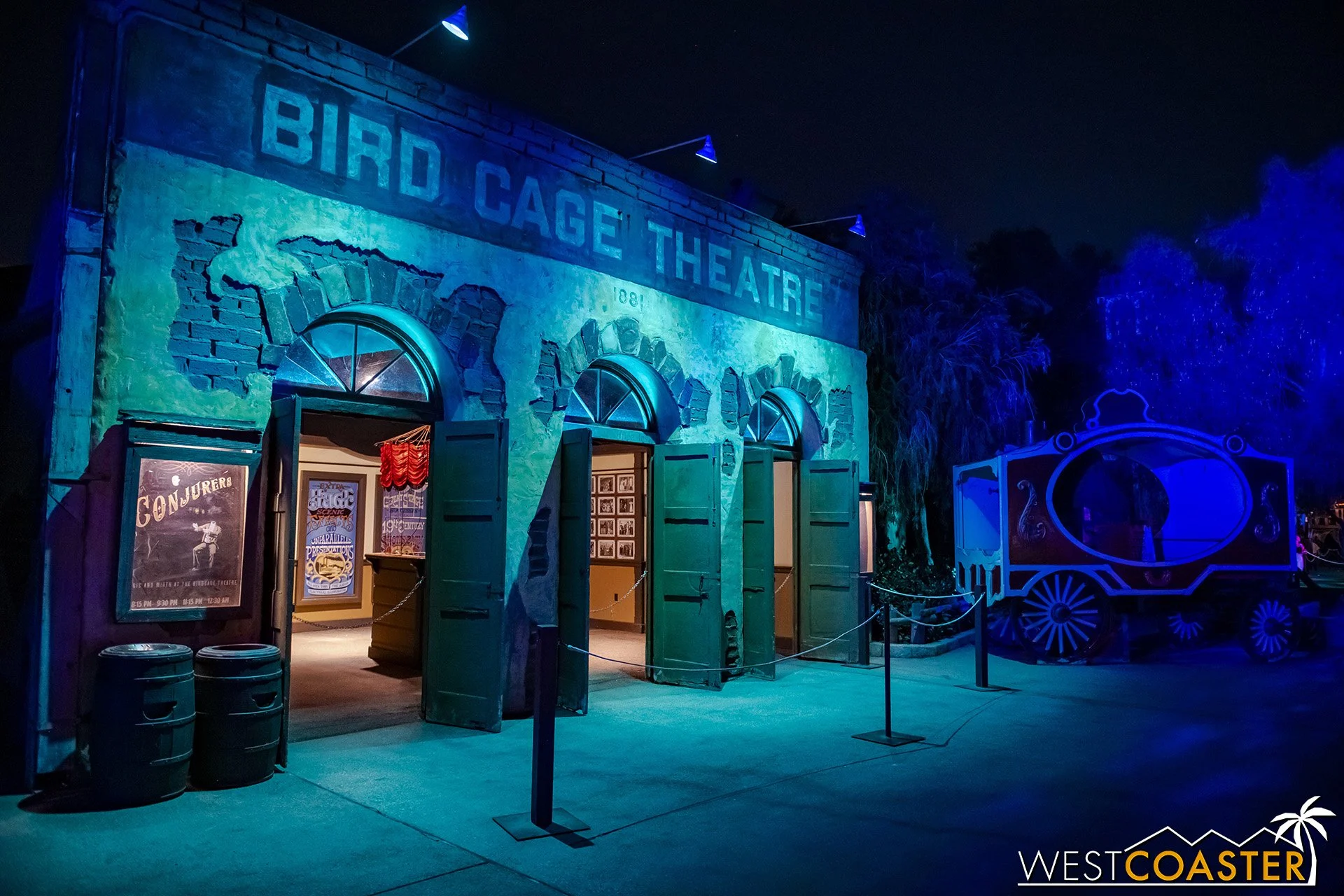 Lastly, we’ll close the update with some photos of the beautiful front gate entry area. Knott’s had been changing this up every year, but the current set-up is pretty iconic and has remained generally the same—dominated by the trio of towering skeletons (long before Home Depot made them commonplace) and a gravely setting. It’s a regular photo op spot throughout the night and after park closing, much like Sleeping Beauty Castle at Disneyland—if only that castle was made of bones!