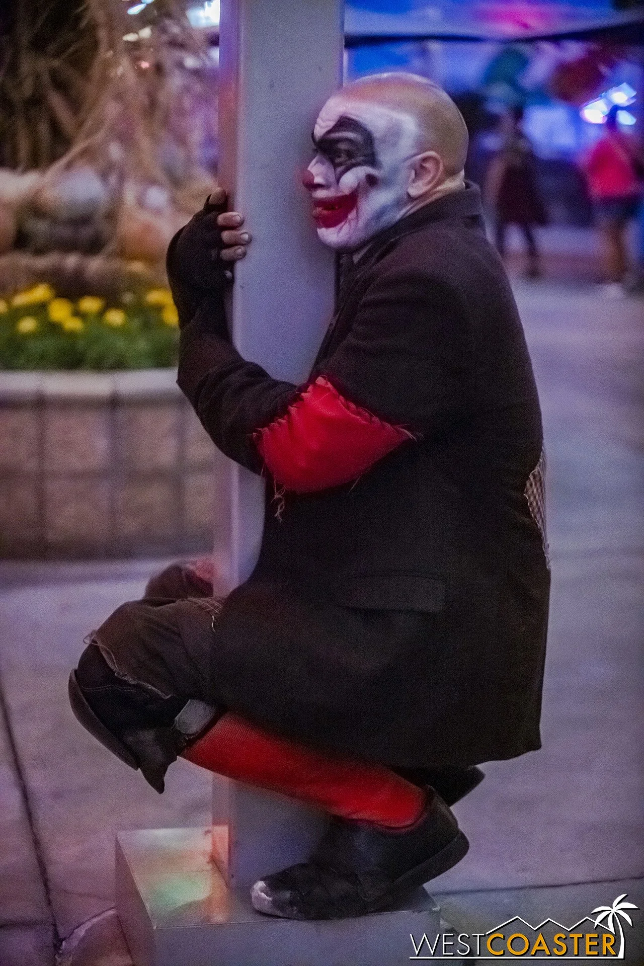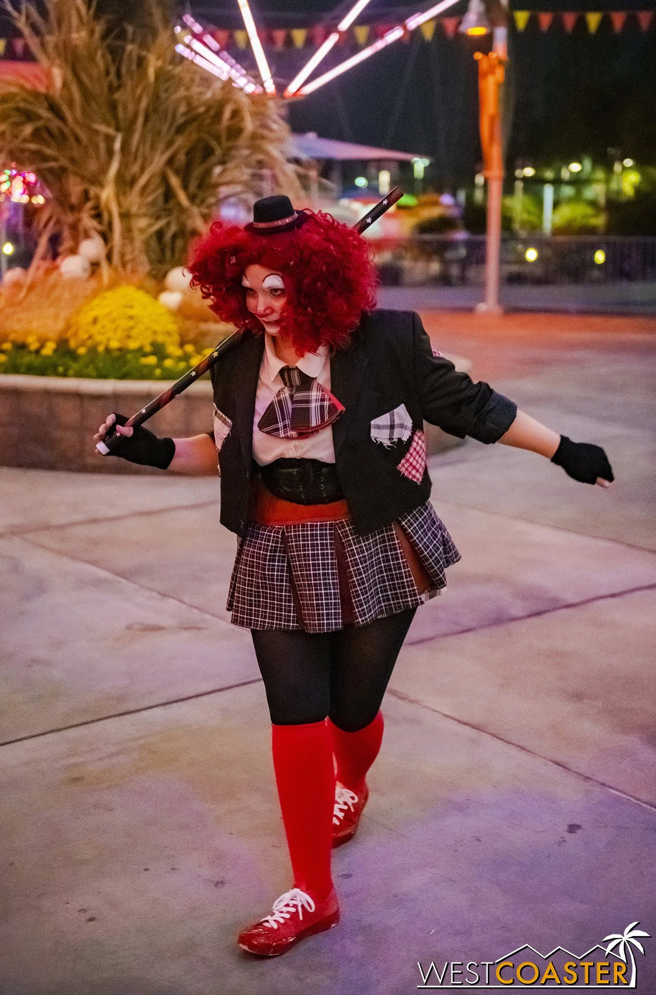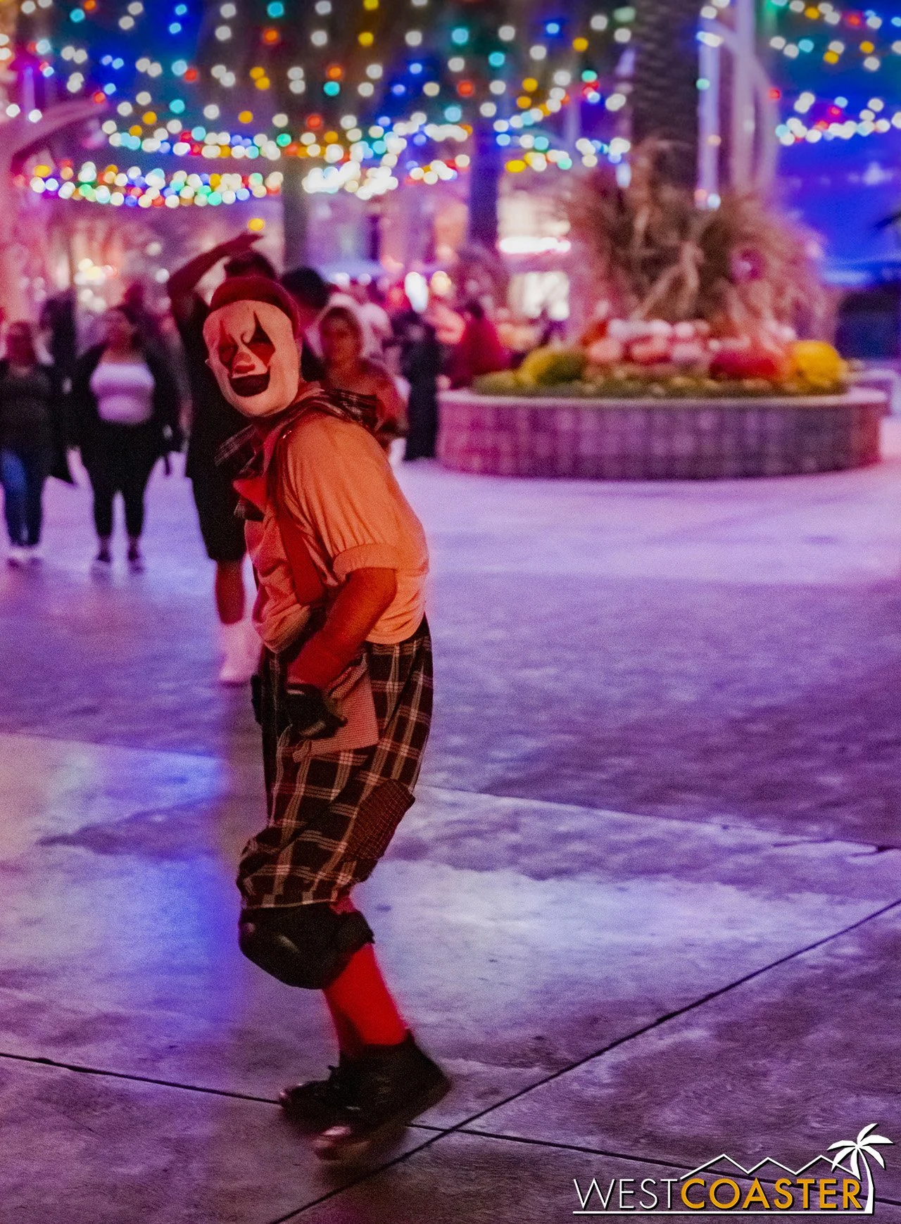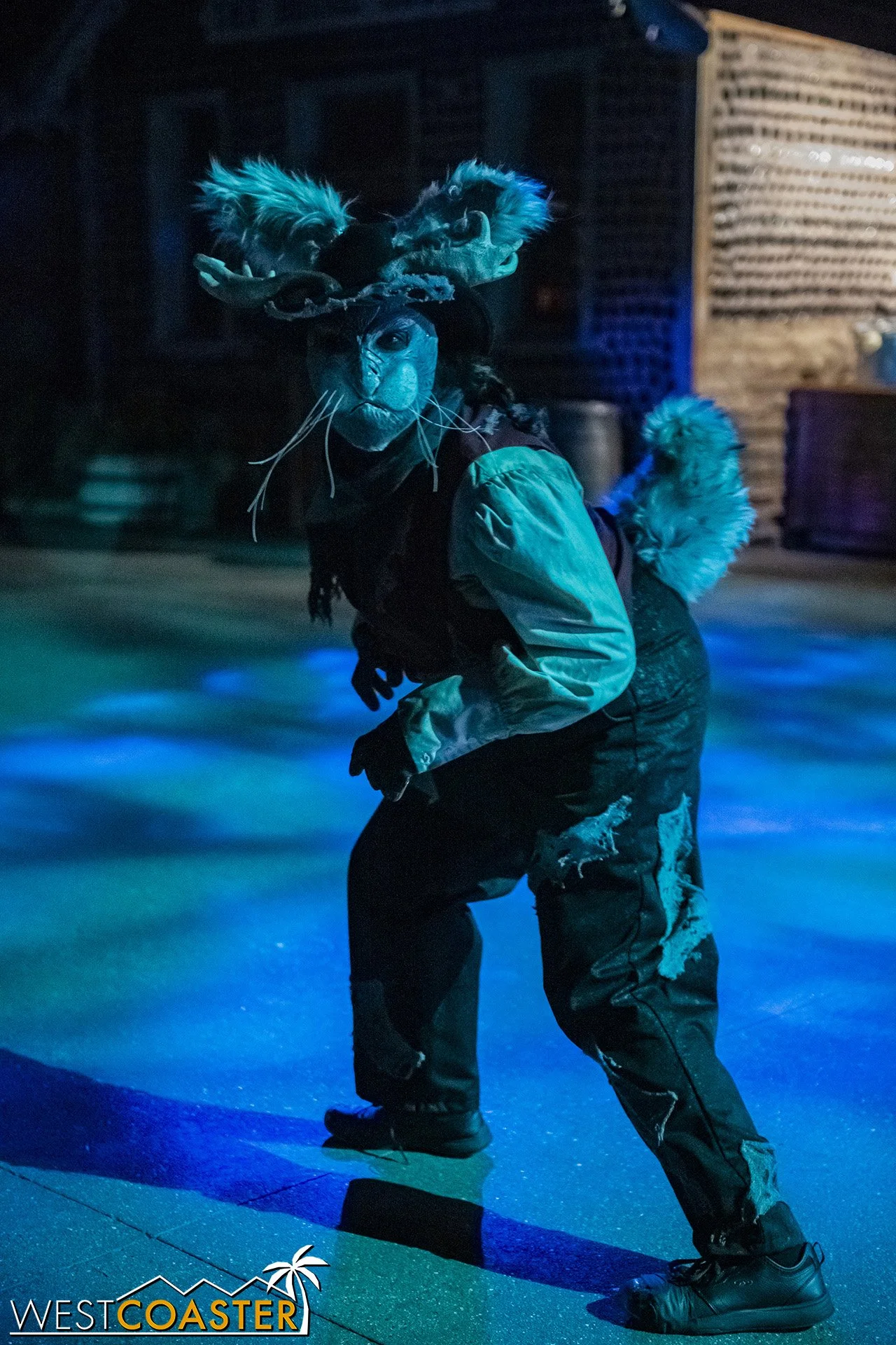Bright, fogless, and open, Carnevil is the absolute antithesis of Ghost Town. With limited advantages for hiding spots, the scareactors here must rely on coulrophobia to achieve their scares. But barring that, they’re also the most hilarious scareactors in the park, because they get to live up to their stereotype was pranksters and maniacs and entertainers. Whether it’s with improvised skits using their own scare props, stalking or mocking guests, or role playing some absurd game with each other as a distraction for team-up scares, the clowns in Carnevil put on quite a show. We do wish that Knott’s would incorporate more set pieces—even if they were mobile—to give the area more ambiance than just colorful lights and freak show banners, but the fantastic talent still find a way to get their frights and startles.