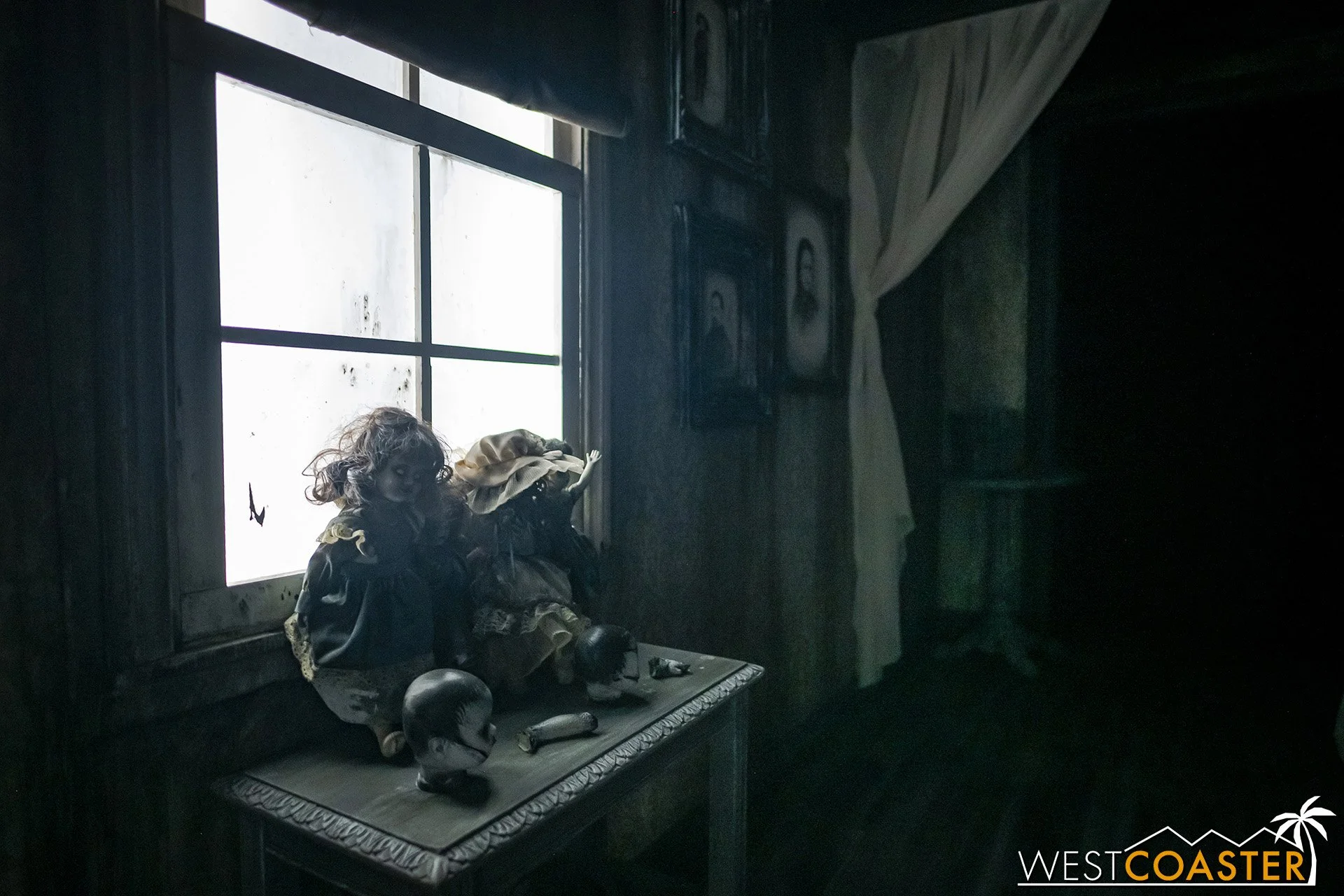 Teased in storyline by 2021’s Invitation to Terror show, this maze took guests back to the 1980s, around a campfire scene where a troupe of campers reads a haunting tale from the book. This summons sinister spirits, and guests jump through a tent and into a scene from the 1800s, where the seeds of Sarah Marshall seem to be scattered in a black and white rendering. A Puritanical mother shrieks at her frightened son, and disturbing artwork and dolls adorn the bedroom.